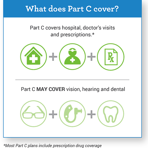 Medicare Part C, also known as Medicare Advantage, is an all-in-one alternative to Original Medicare (Part A and Part B). These plans are offered by private insurance companies approved by Medicare and often include extra benefits such as vision, dental, hearing, and prescription drug coverage.